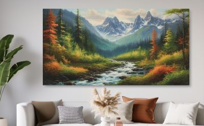 9. Schilderij bergrivier en bos - Artello
