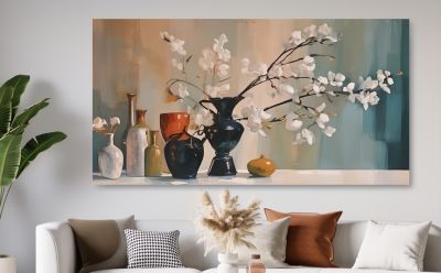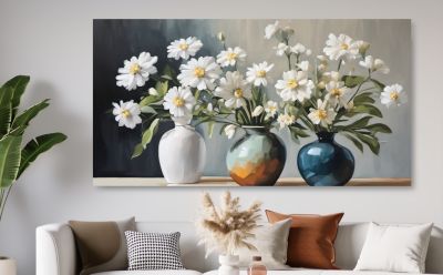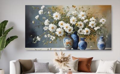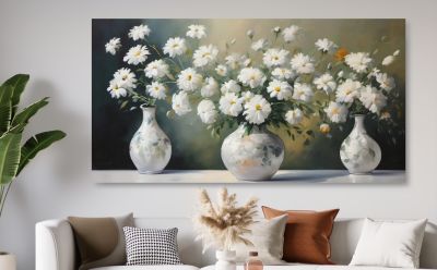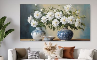 20. Schilderij boeket witte bloemen in vaas - Artello