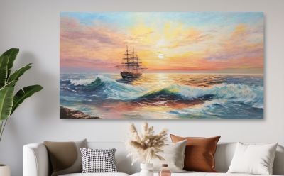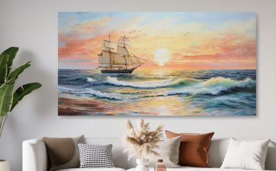 11. Schilderij zonsondergang schip op zee - Artello