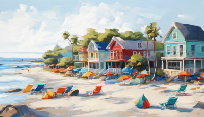 4. Schilderij zee strandhuisjes - Artello